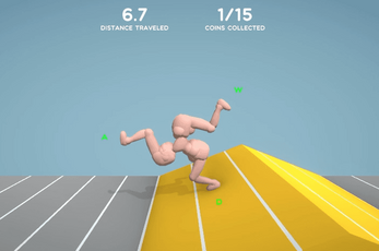 2. Maneuver your unconventional human through the obstacle course. See if you can reach the finish line at the 100m mark, and collect all 15 coins along the way. Press the letter next to a limb to use it. Press space to use all the limbs at once.
